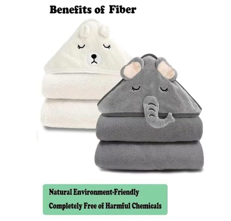 This baby towel has a very beautiful design, they are super soft perfect for newborns, it does not have a high adsorption capacity. It has a suitable size, it is very practical for first-time parents, its drying is fast.