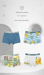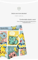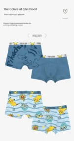 Upgrade your child’s everyday comfort with our Pokémon boys’ cotton underwear, designed with breathable fabric and fun cartoon prints. Made from 100% soft cotton, these boxer shorts are skin-friendly, moisture-absorbing, and gentle on delicate skin. Each piece features iconic Pokémon characters like Pikachu, Squirtle, and Bulbasaur, making them perfect for young fans who love playful designs.