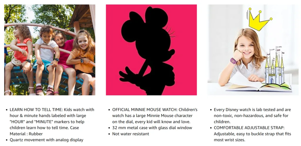 Not only are these watches adorable with their Minnie Mouse designs, but they’re also incredibly functional. My nieces love wearing them, and they’ve become an excellent tool for learning to tell time. The analog display is clear and easy to read, making it perfect for young learners.