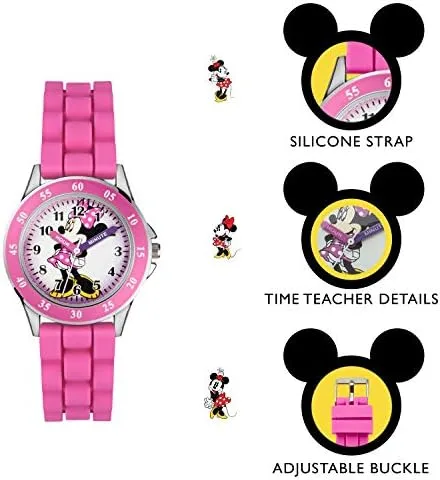 This watch is adorable and perfect for kids learning to tell time. My daughter absolutely loves the Minnie Mouse and unicorn design — she wears it every day! The colors are vibrant, and the silicone band is soft and comfortable. The hour and minute hands are clearly labeled, which makes learning time super easy. Great purchase!