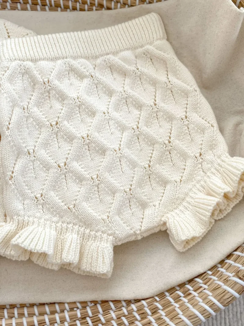 - Adorable Style – Elegant cardigan paired with ruffle-trim shorts for a sweet, fashionable look.