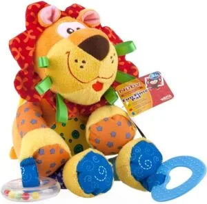 Toy bar with elephant and monkey toys to entertain and practice reaching and batting; soothing Taggies sensory ribbons on side of seat; easily remove the toy bar when you need to scoop up baby