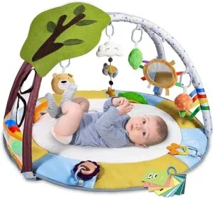 The head rest was pretty useless because the loops are so high, but we just propped baby up with rolled up blankets. The arc with the hanging toys is a bit high for the eye level, but that’s not a huge deal to me. Overall a great affordable option for the baby lineup!