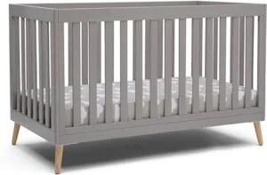 Essex 4-in-1 Convertible Baby Crib, Grey with Natural Legs