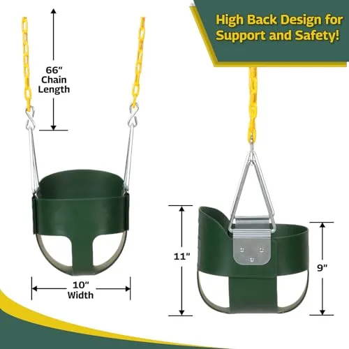 117 reviews for Eastern Jungle Gym Heavy-Duty High Back Full Bucket Toddler Swing Seat | Coated Swing Chains Fully Assembled | Green Swing Set Accessory