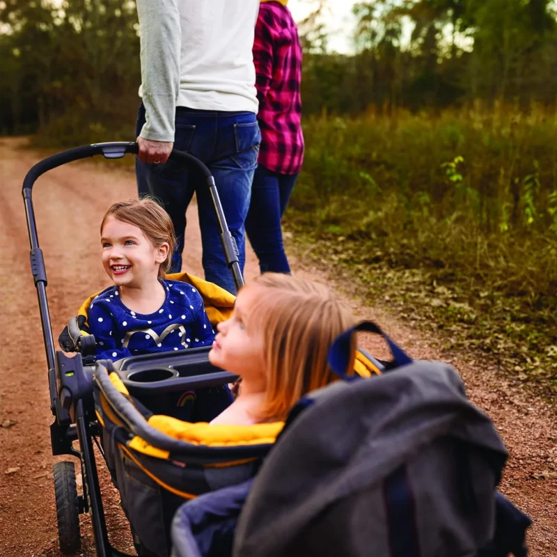GROWTH POTENTIAL: Designed to fit two children ages 6 months to 5 years (each seat holds up to 55 lb) and is easily modified, by adding a toddler seat or car seat with adapter for flexible seating arrangements (all sold separately)