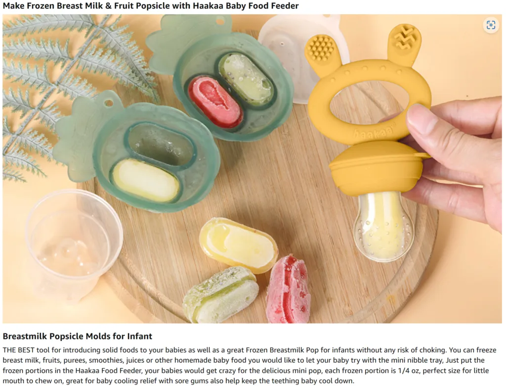 - Make Breastmilk Popsicle for Your Babies: Haakaa are coming up with a solution for freezing milk with a baby food feeder, the pouch cover allows to pour breast milk, purees, juices or other liquid directly into the feeder without leaking and put in freezer to get frozen milk, fresh puree popsicles, provide baby the cooling relief for teething gums!