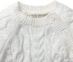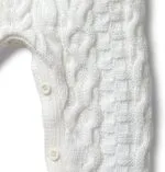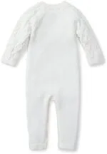 This classic cable knit sweater romper in our signature soft organic cotton will be the heirloom piece for your baby that you hold onto forever. Dressing baby is easy with button openings at both the shoulder and inner legs. Cozy and comfortable, this makes the perfect gift for a sweet little one.