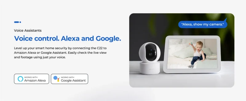 Mount your IMILAB C22 3K Baby Monitor Camera on walls, ceilings, or tables effortlessly. With WiFi 6 technology, enjoy faster streaming and lower latency. Works seamlessly with Alexa and Google Home for hands-free control.