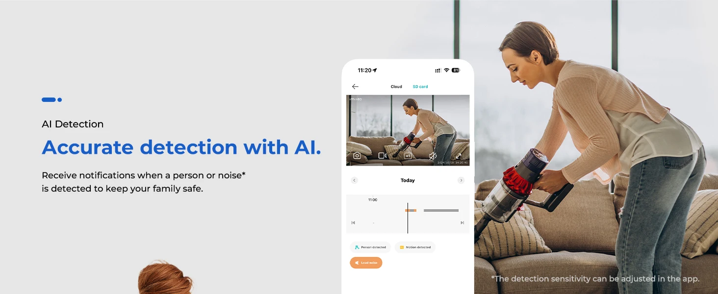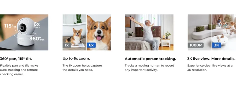 The IMILAB C21 3K Baby Monitor Camera delivers full-angle home surveillance with 360° rotation and precise pan-tilt-zoom control. AI-powered motion and sound detection instantly alert you when your baby cries or someone enters the room.