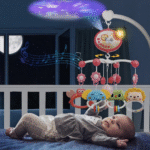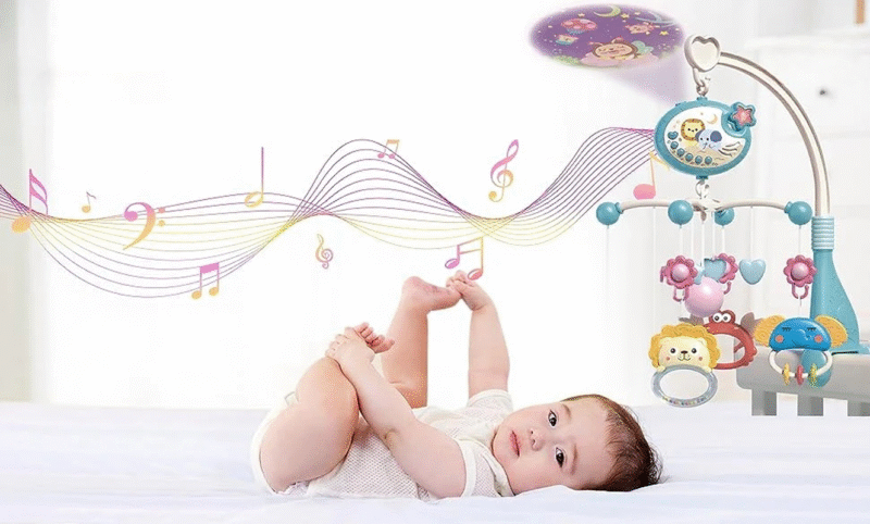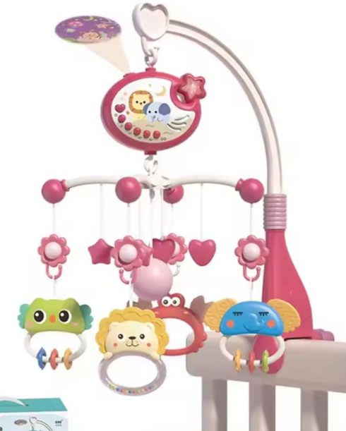 Create a dreamy nursery atmosphere with the Musical Baby Crib Mobile — a multifunctional mobile designed to relax and entertain newborns. It combines music, projection, rotation, and soft lighting to help babies fall asleep faster while stimulating sensory development.