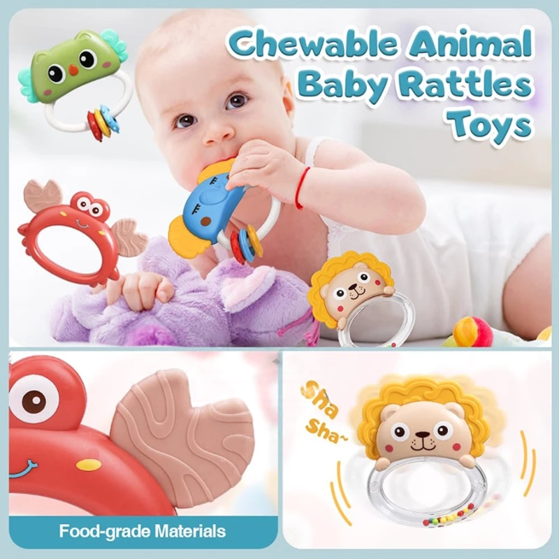 - 🔄 360° Rotating Rattles – Engaging movement for early visual development.