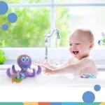 Super cute bath toy! I love how it’s interactive, and it teaches your baby motor skills by putting the rings on the arm of the octopus. Holds up well and cleans well, haven’t had any issues with mold which is important.