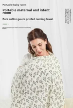 Crafted from soft, breathable, double-layer cotton gauze, the cover feels light and airy even in hot summer weather—keeping both mom and baby cool and relaxed. The elegant leaf print adds a gentle touch of nature-inspired charm.