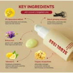 - Bakuchiol, Vitamin C & 3 Peptides – Boosts collagen and improves elasticity.