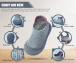 - BREATHABLE DESIGN – The upper part of the baby walking shoes, knitted with high quality cotton material, allows your child’s feet to breathe. Your toddler can wear our baby sock shoes comfortably all day long. There won’t be any moisture. Our baby sneakers keep warm in winter and cool in summer. It can be used comfortably in all seasons.