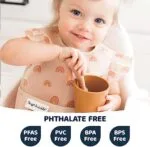 a must-have for parents! The waterproof fabric keeps my baby dry, and it’s lightweight yet durable. It’s easy to clean, either by wiping or tossing it in the wash. Plus, it’s free from PFAS, PVC, BPA, and phthalates, so I feel safe using it. The adjustable fit ensures it grows with my baby. Highly recommend for hassle-free, mess-free mealtimes