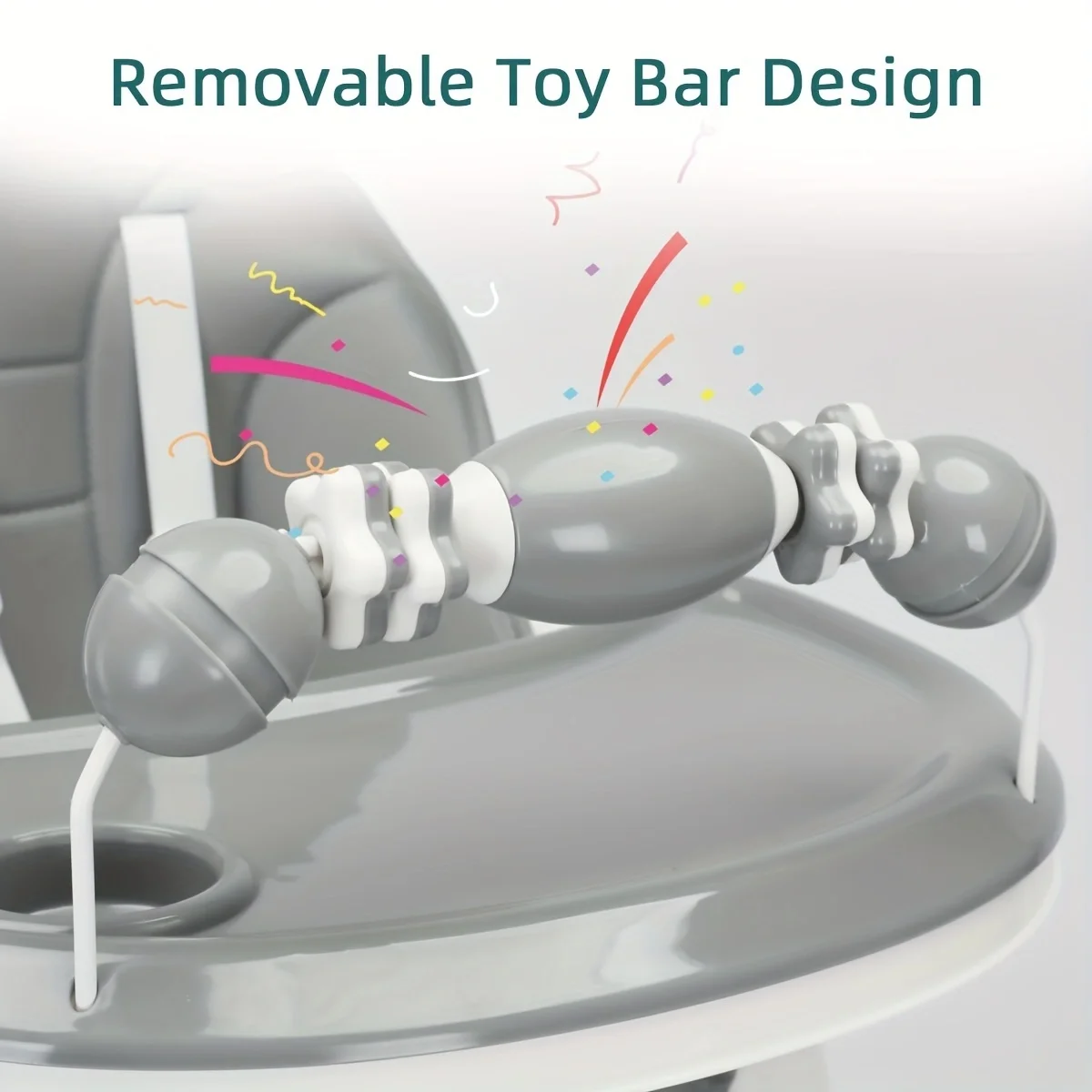 Includes a fun and engaging toy rack to keep your little one entertained during meals or downtime.